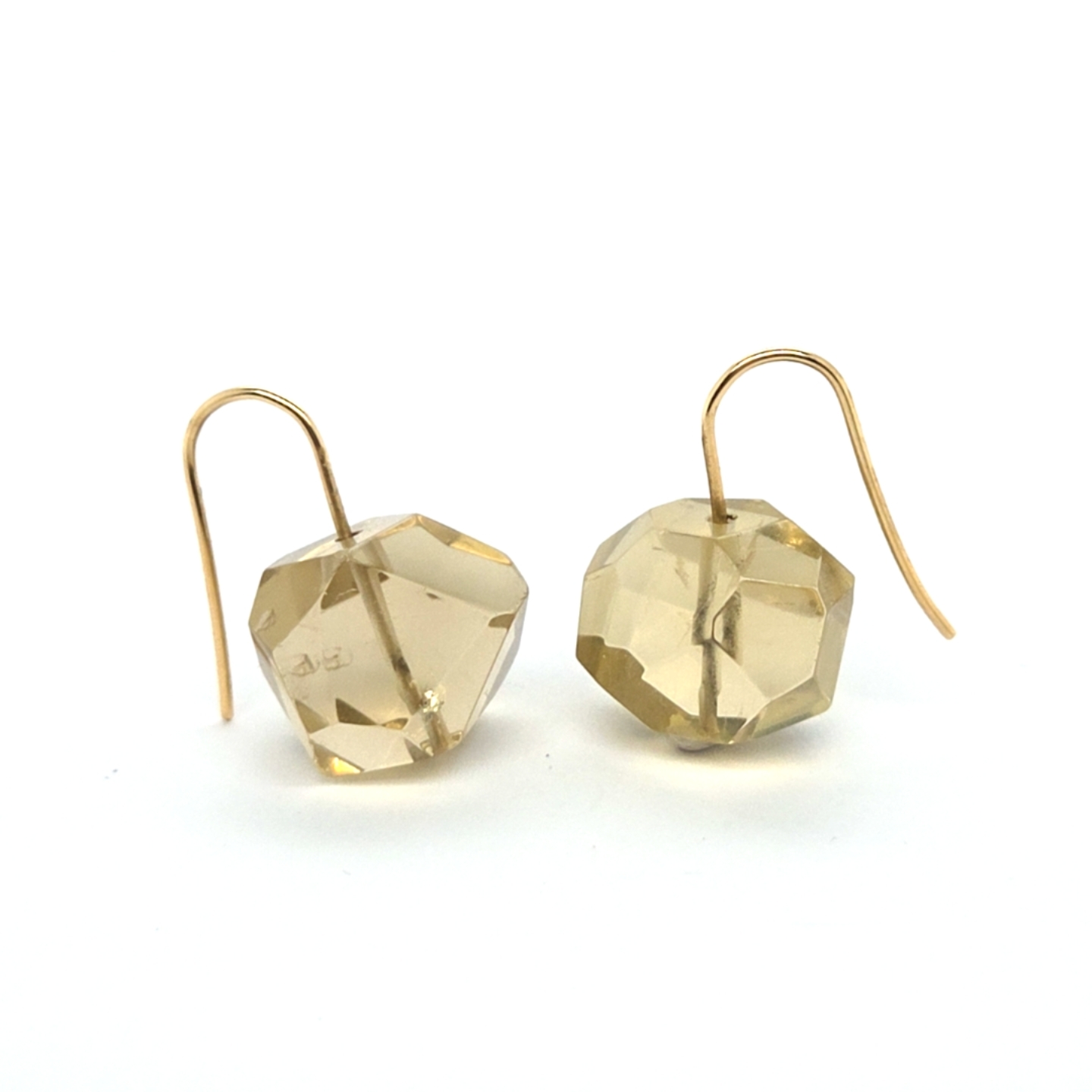 Faceted lime quartz earrings with 14k yellow gold hooks.