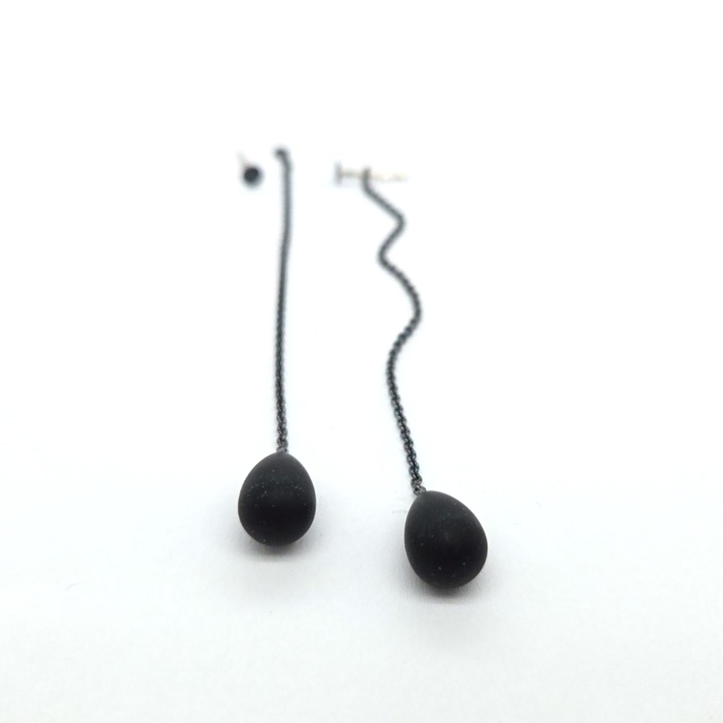 Silver Shoulder Dusters with onyx drops measuring 13 x 8.5 mm.