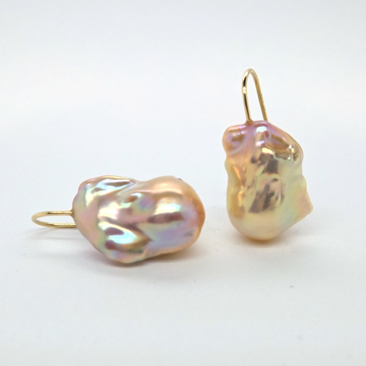 Pink baroque freshwater pearl with 18k yellow gold ear hook.
