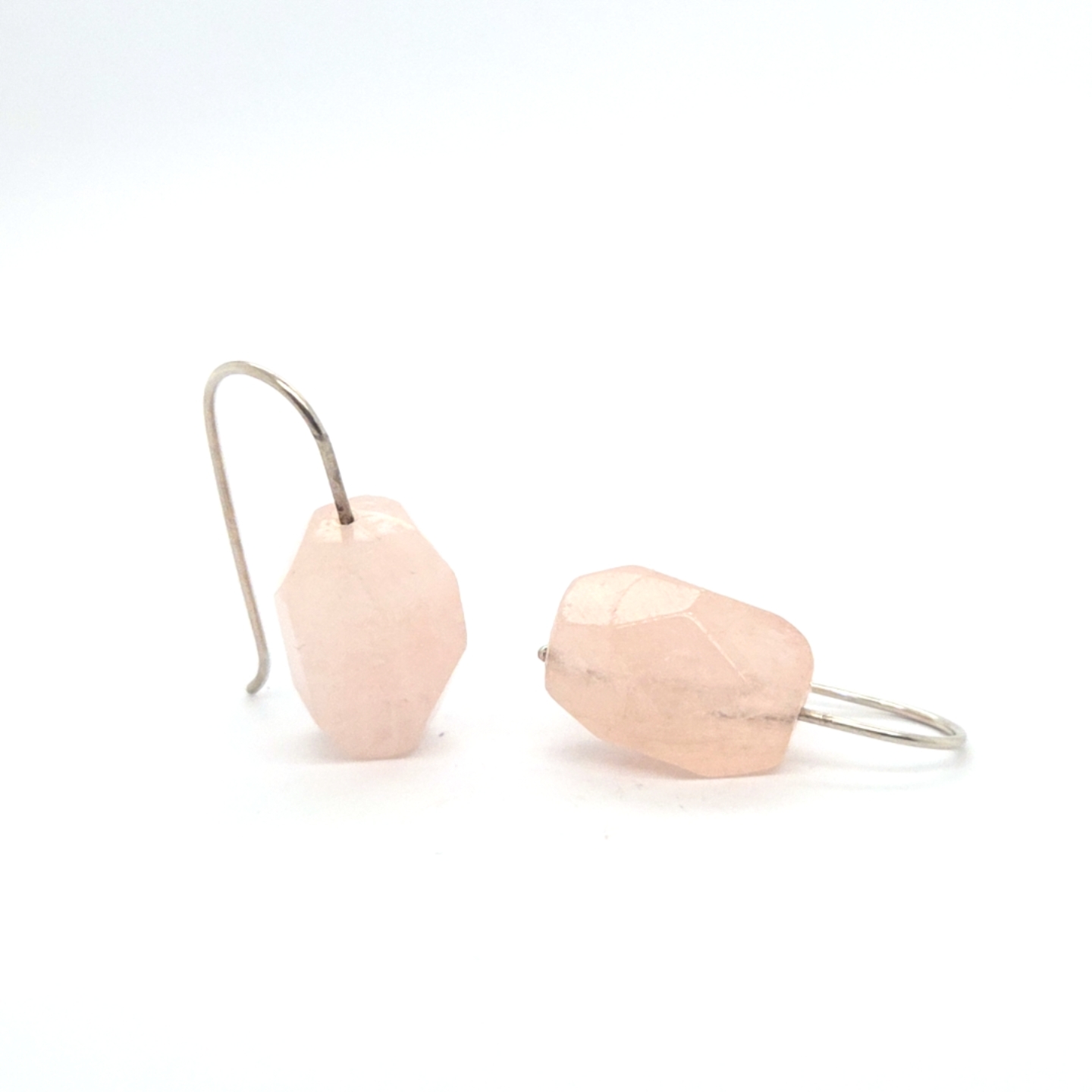 Silver ear hooks with pink beryl (18x13mm). The color is darker in the photo, but in person it’s a lighter pink.