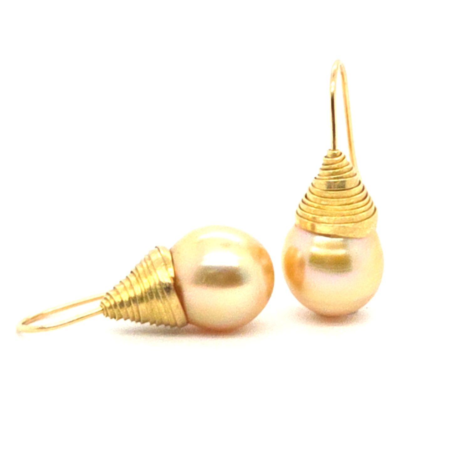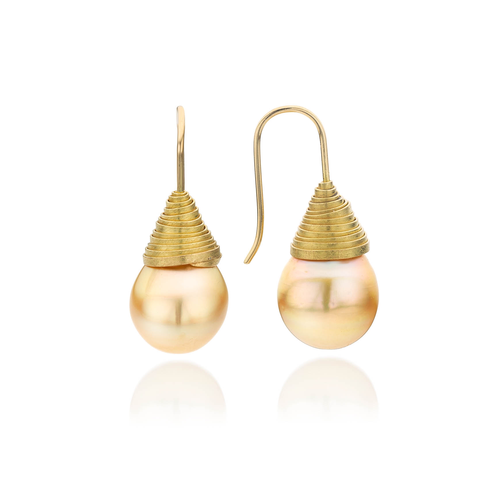 Nestjes oorbellen van 18krt geel goud met natuurlijke goudkleurige Zuidzee parels (17 x 13mm)
