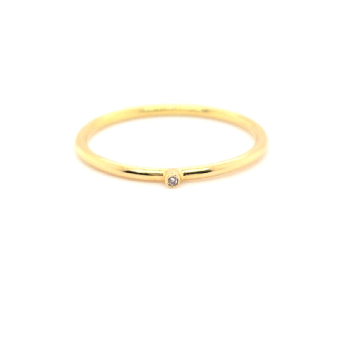 Crisis ring, een gepolijste 18 krt geel gouden ring 1,4mm breed met 0.01 ct TW VSI diamant.