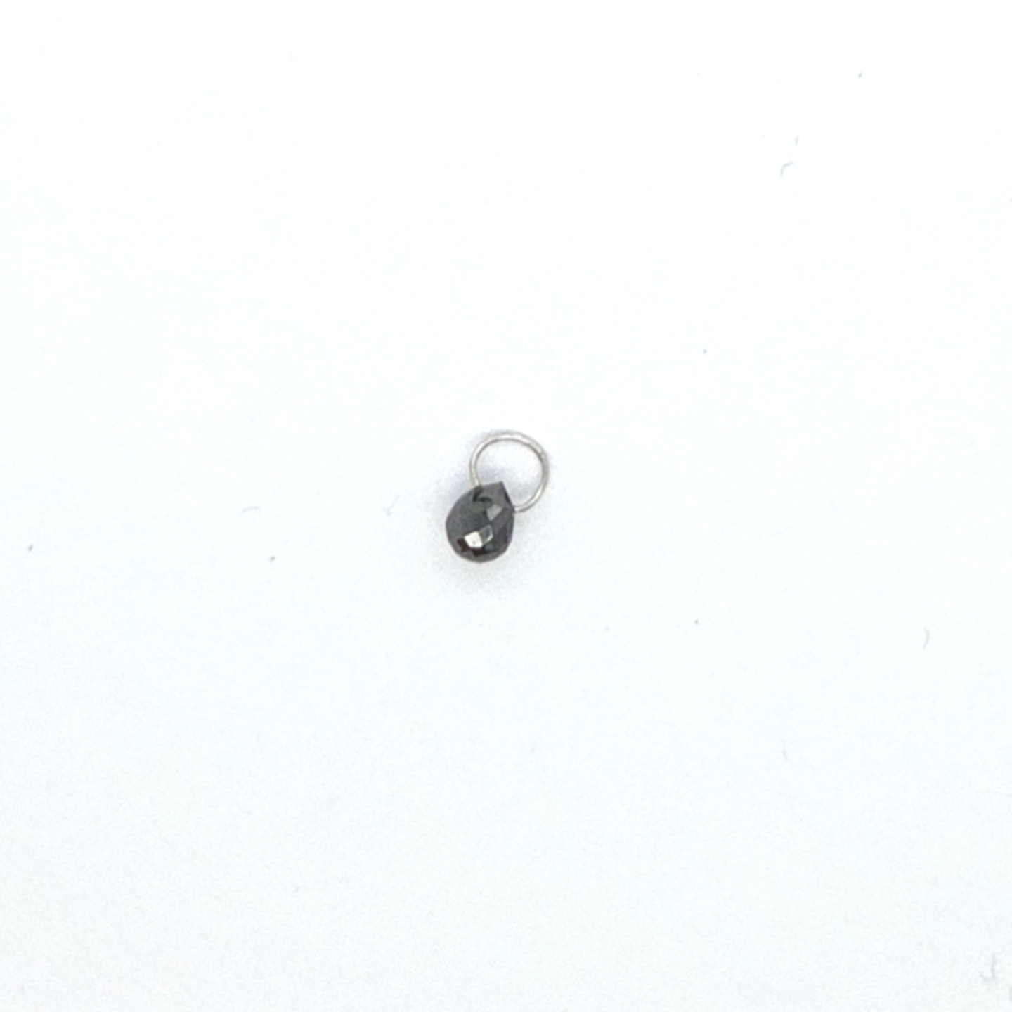 Briolet geslepen zwarte diamant met 18krt wit gouden oogje.