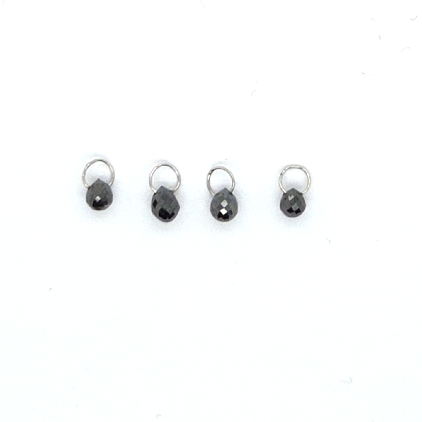 Briolet geslepen zwarte diamant met 18krt wit gouden oogje.