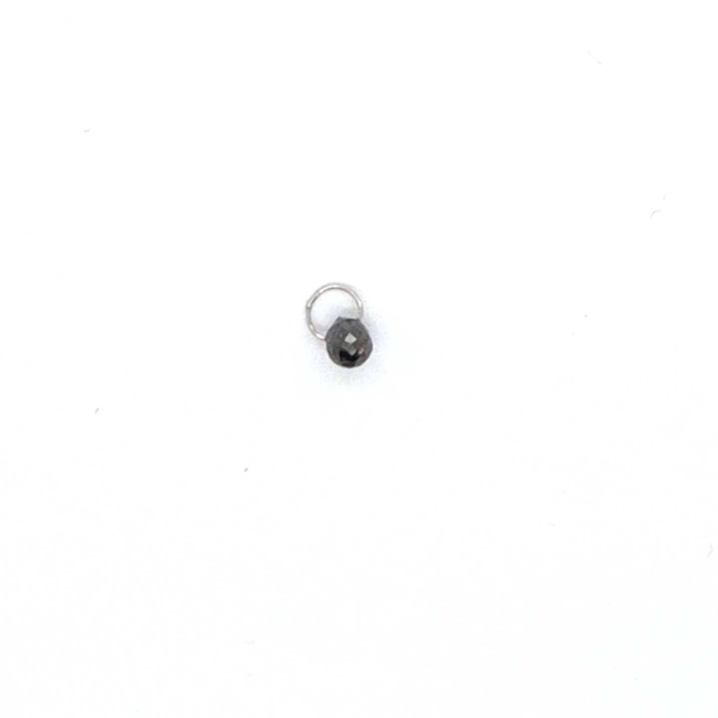 Briolet geslepen zwarte diamant met 18krt wit gouden oogje.